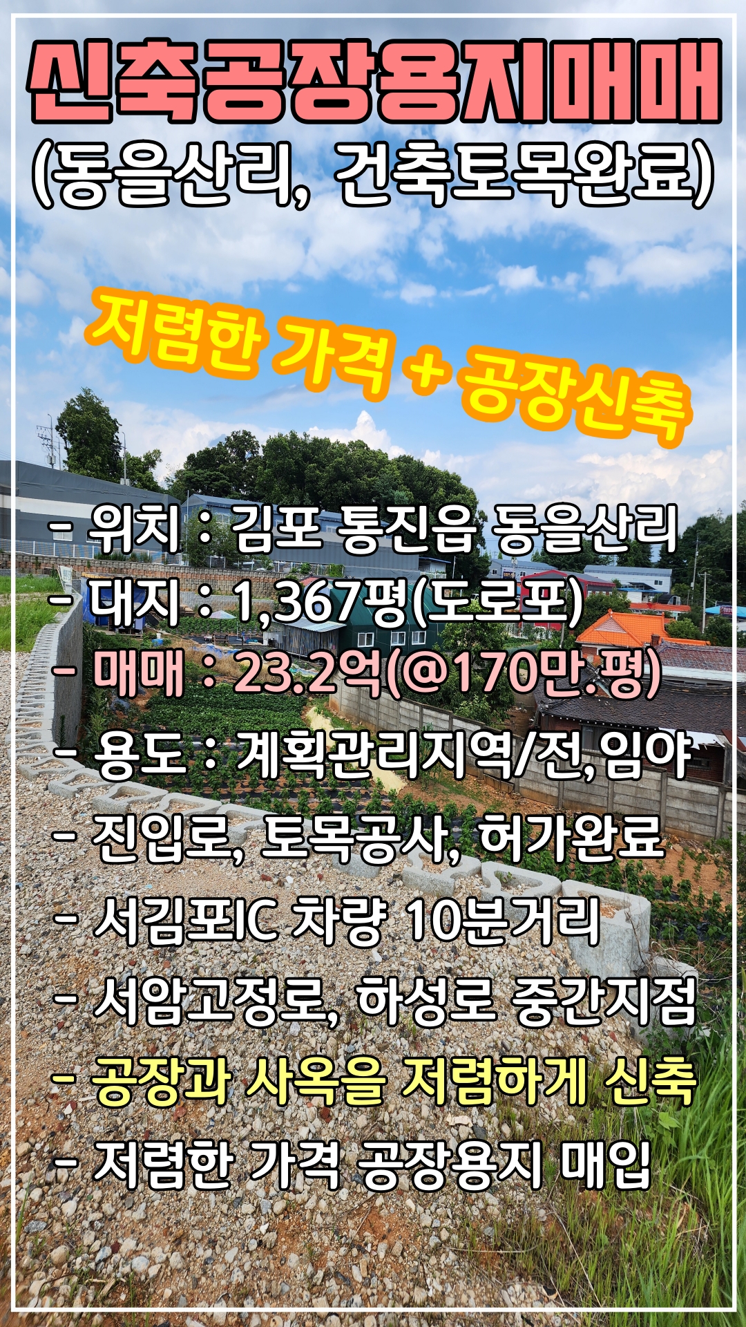 김포신축공장토지매매 물건에 대한 정보제공이였습니다.