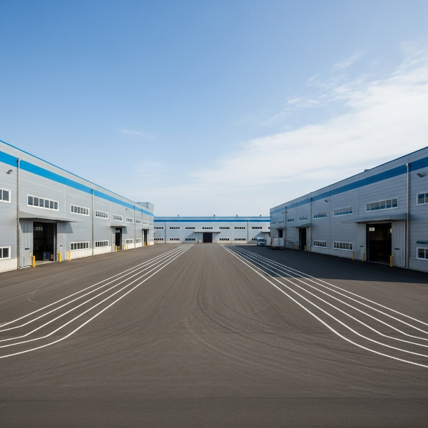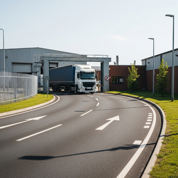 - 도로와 부지가 평탄하게 맞물려 있어 대형 트럭 회전 여유 충분
